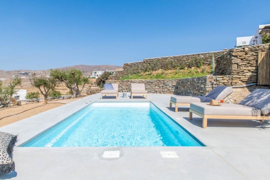 Σύγχρονη αρχιτεκτονική με έντονο κυκλαδίτικο χαρακτήρα, ιδιωτικότητα, ανεμπόδιστη θέα και δυνατότητες περαιτέρω αξιοποίησης του οικοπέδου.