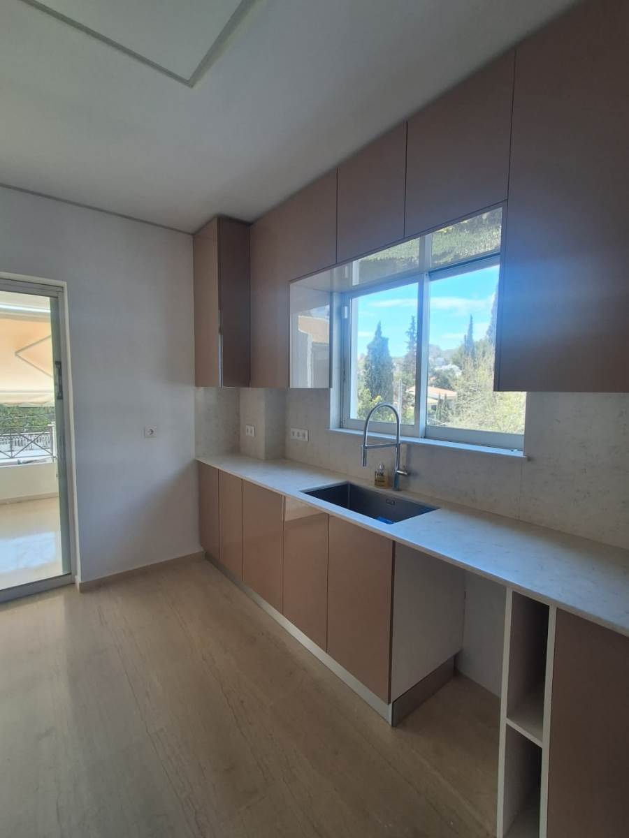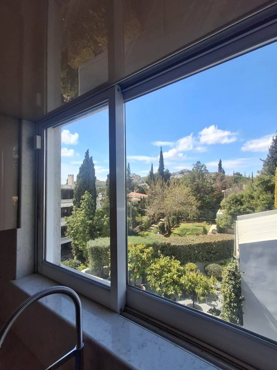 Το διαμέρισμα διαθέτει άνετους και λειτουργικούς χώρους, με μεγάλα ανοίγματα που προσφέρουν πλούσιο φυσικό φως. Το ευρύχωρο καθιστικό με μαρμάρινο δάπεδο και τζάκι συνδέεται με μεγάλη σκεπαστή βεράντα ιδανική για χαλάρωση και εξωτερική τραπεζαρία.Όλα τα μπάνια είναι σε άριστη κατάσταση, με καθαρή αισθητική, λειτουργική διάταξη και μεγάλους καθρέφτες. Το κυρίως μπάνιο διαθέτει διπλό νιπτήρα και μπανιέρα.Η πολύ μεγάλη βεράντα με τέντες και θέα στο πράσινο αποτελεί μοναδικό πλεονέκτημα, προσφέροντας αίσθηση μονοκατοικίας.
