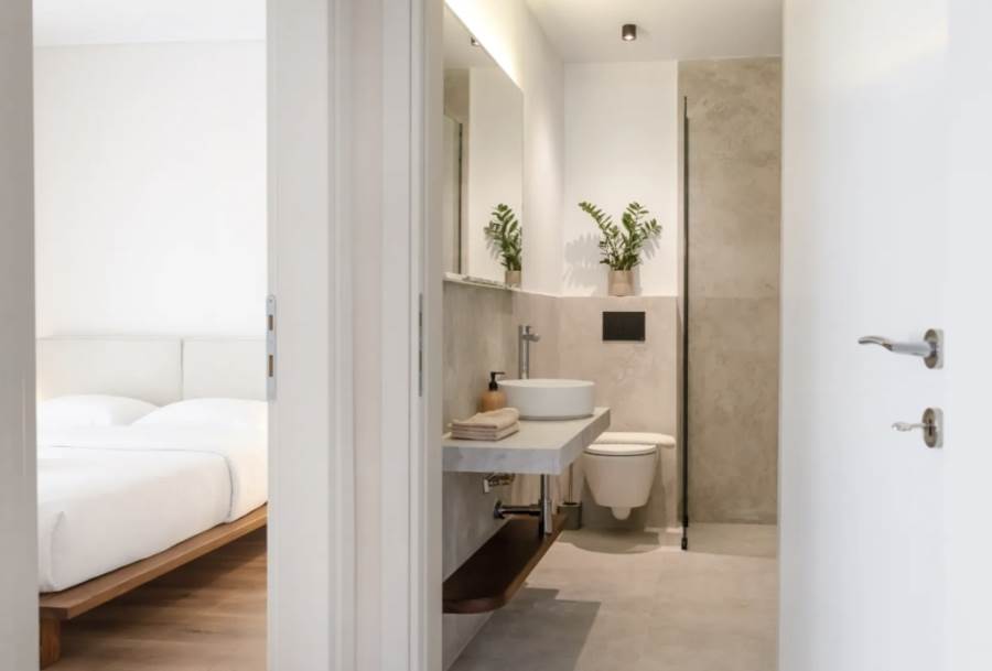 Αναπτύσσεται σε λειτουργική διαρρύθμιση με δύο ευρύχωρα υπνοδωμάτια, άνετη σαλοκουζίνα και σύγχρονο μπάνιο. Διαθέτει μεγάλο μπαλκόνι με τέντες και ανοιχτή θέα τόσο προς τον Θερμαϊκό όσο και προς την Άνω Πόλη, προσφέροντας μοναδική αίσθηση χώρου και φωτεινότητας.