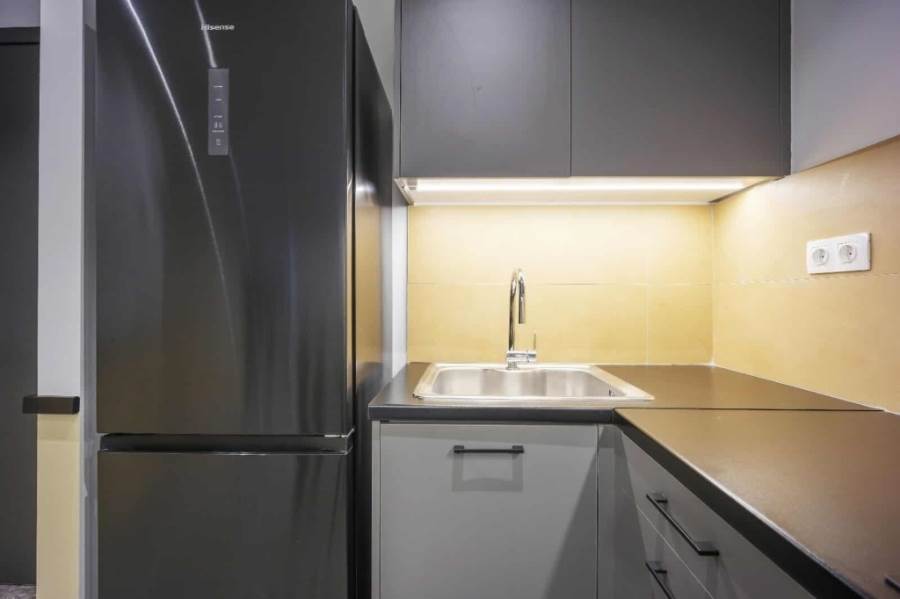 Athens, Kypseli-Platia Kypselis, Small Studio For Rent, 37 sq.m., In Plot 100 sq.m., Property Status: Refurbished, Floor: 1rst, 1 Level(s), 1 Bedrooms 1 Kitchen(s), 1 Bathroom(s), View: Unlimited, Building Year: 1970, Energy Certificate: A, Type of door frames: Aluminum, Features: Elevator, Security door, Electric Appliances, Double Glazed Windows, Balconies, Metro, Furnished, Luxury, Airy, Roadside, Bright, Painted, Renovated, Short Term Lease, Price: 700€. RealView, Tel: 6972454484, email: irinilomi@gmail.com